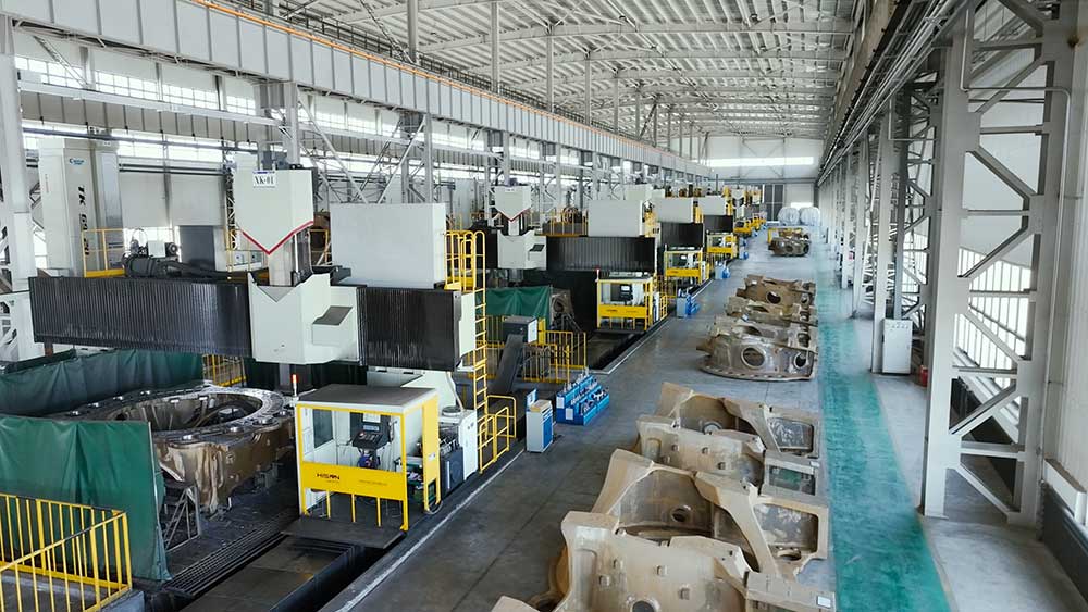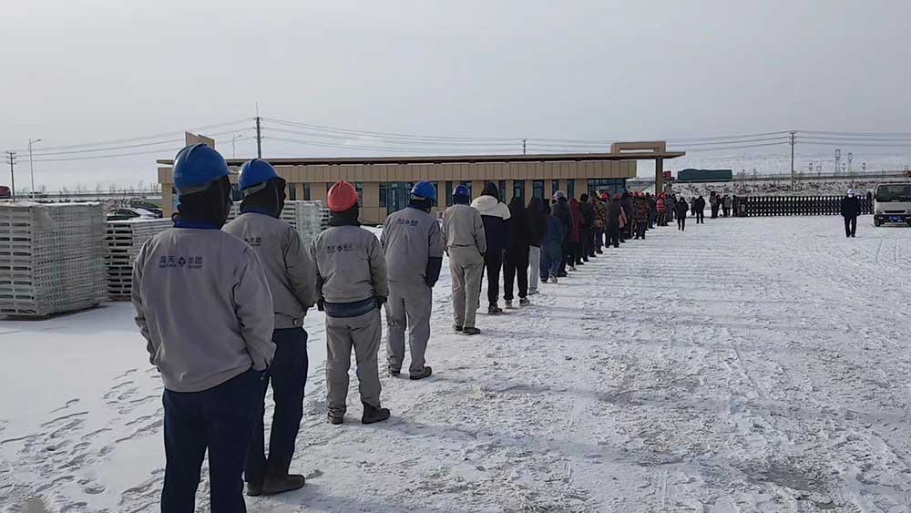 2022年,甘肅日月建造時正值深冬,十二月的西北大雪紛飛,氣候條件相當惡劣。為了保證現場設備的同步安裝、趕上交付的工期,海天精工勇擔重任,派出了一支專業能力過硬的服務團隊,與甘肅日月的員工們吃住在一起,甚至就地駐扎在集裝箱內以便隨時為客戶服務。遇山開山,逢水架橋,海天精工全心全意為客戶創造價值,見證了甘肅日月一期年產10萬噸大型風電鑄件制造及精加工項目從無到有的歷程。
