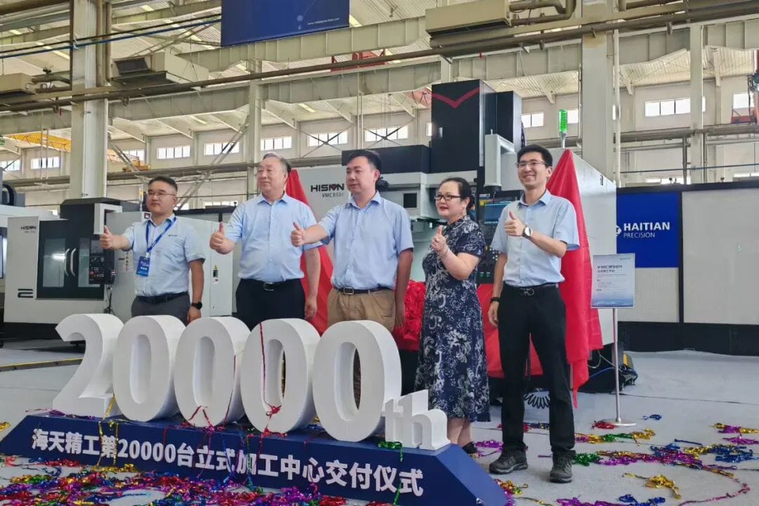 隨后,現場來賓與海天精工各位領導一同為第20000臺立式加工中心進行剪彩,并由精工常務副總經理周益榮進行交付授牌,標志著海天精工以此為契機,邁出篤行不怠的堅定步伐。